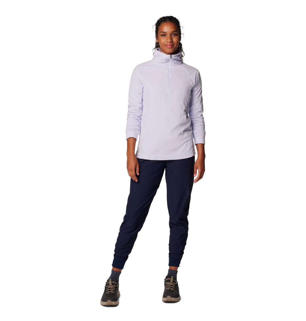 Essential all year long, this half-zip layer has a feminine fit and smooth feel. Comfort stretch lets you move, while a roomy, high collar keeps out drafts.
